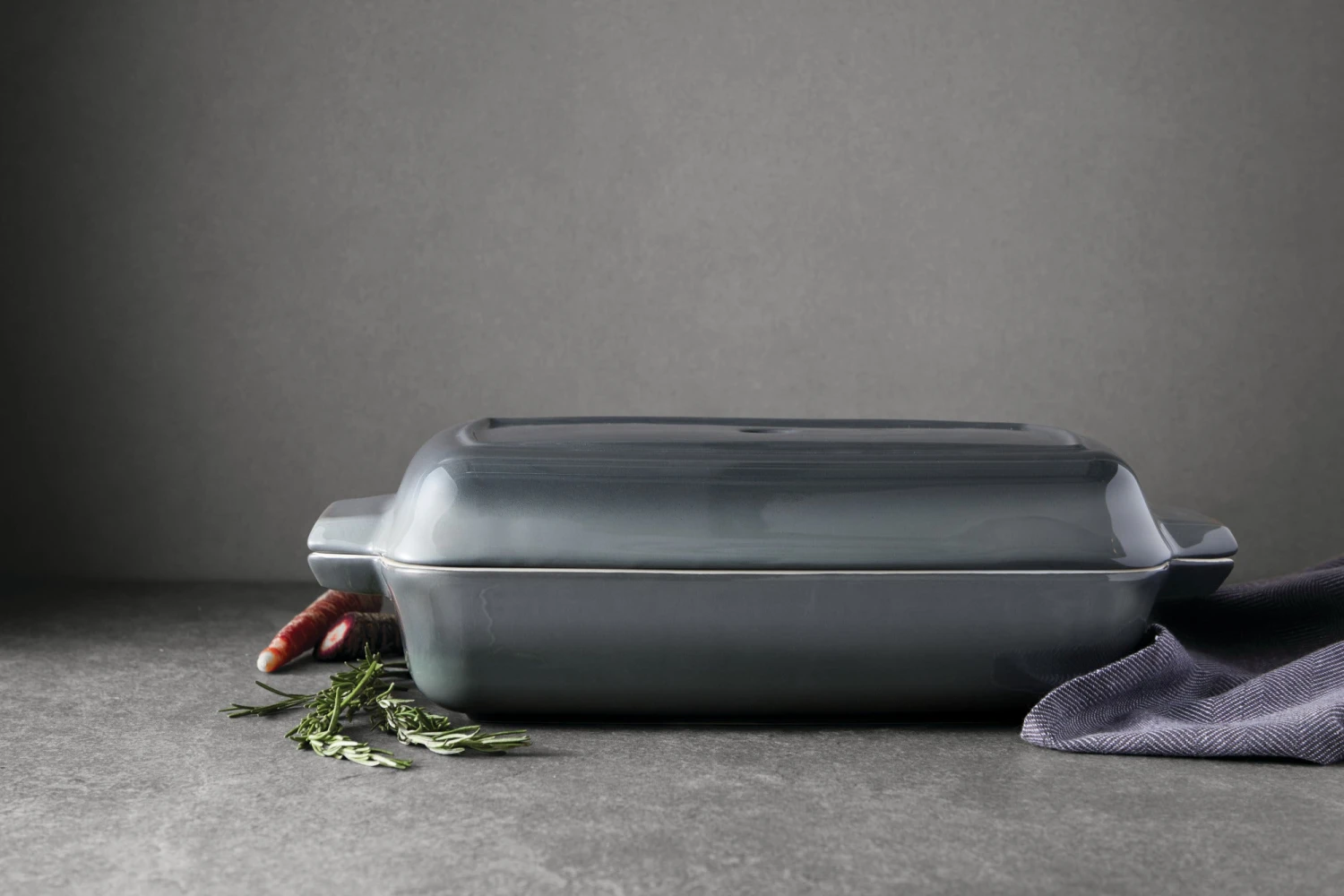 - Generous, rounded handles for easy lifting with an oven mitt or cloth