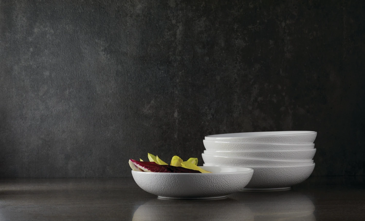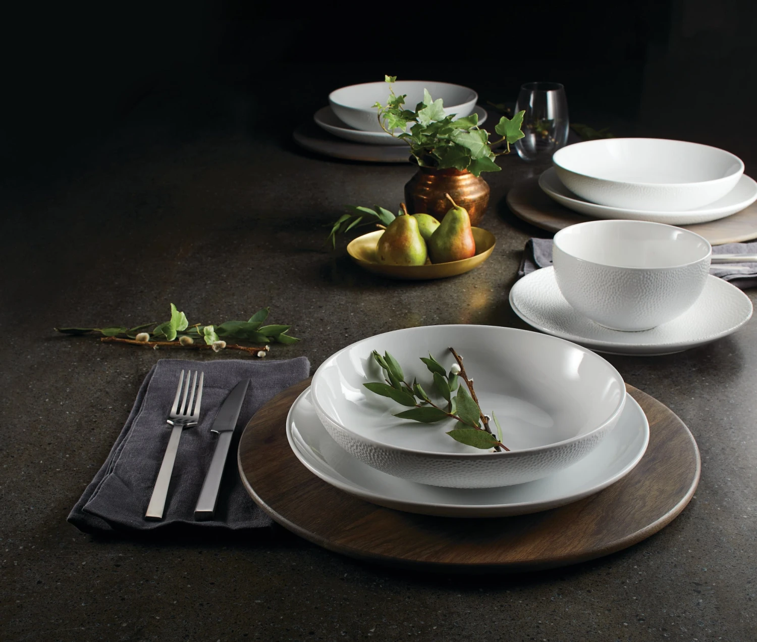 The PADERNO Cranbrook Dinnerware Collection features a beautiful textured pebble design that will bring a refined elegance to your dinner table.