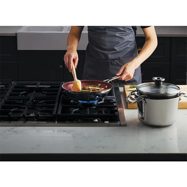 - 10-Piece Set Includes: 2.3 L (2.45 qt) saucepot, 3.3 L (3.45 qt) saucepot, 5.3 L (5.62 qt) stock pot, 8 1/2″” (21.5 cm) fry pan, 10″” (25.5 cm) fry pan, 11 3/4″” (29.5 cm) fry pan, 4 tempered glass lids